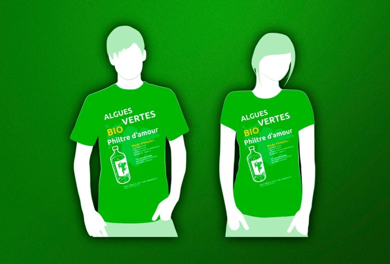 La folle idée des Algues vertes bio est née dans l’esprit un peu fou de mon camarade artiste Dmitri BROE, multitalentueux peintre, sculpteur, affichiste et dessinateur satirique. Nous sommes assez méchamment affectés par les algues vertes en baie de Douarnenez, et ce projet était l’occasion de premièrement, faire prendre conscience aux collectivités que la population est foretement impactée, deuxièmement, qu’il est possible d’en parler avec respect et même d’en rire avec le second degré, afin d’ouvrir un dialogue constructif avec tous les acteurs concernés.